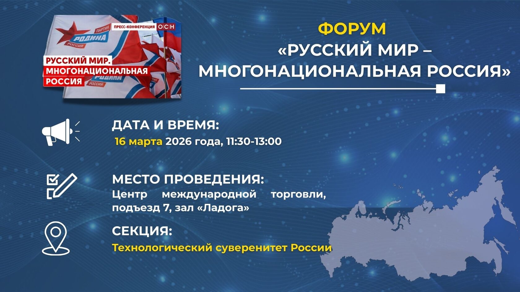 16 марта 2026 года состоится форум «Русский мир – многонациональная Россия», в рамках которого пройдет обсуждение актуальных вопросов научно-технологического развития и демографической политики России.